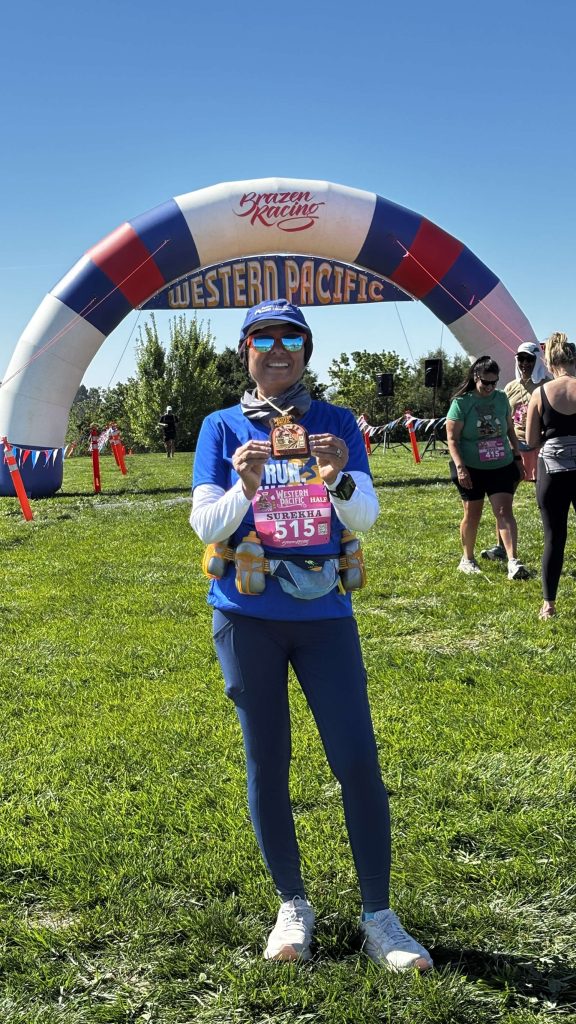 Hi! My name is Fareen. I’m a nature lover who enjoys hiking and finds balance and stress relief through swimming. I started running several years ago, with my first road race being the Boston 5K in 2009. My longest race so far has been the challenging Around the Cape 25K, which included 16 hills! Since joining SJFit in 2015, I’ve continued to train and grow with the group. I’ve also taken on the ZombieRunner Quarry Lakes half marathon in wild weather and the San Jose Rock ‘n’ Roll half marathons on scorching hot days! Running has taught me many valuable lessons, thanks to my SJFit coaches and fellow runners: the importance of pace training, embracing your own race, and how the journey and camaraderie make crossing the finish line so rewarding.